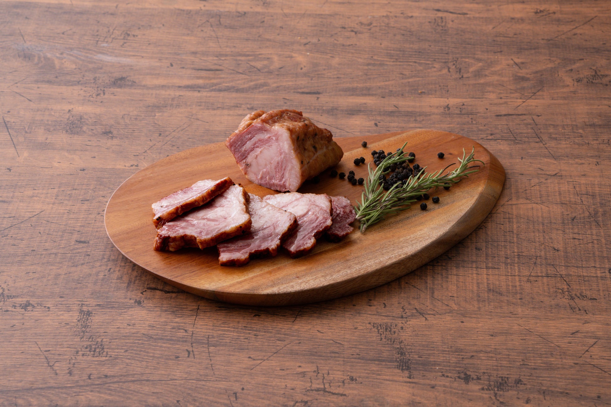 ふわりと広がる芳醇な燻製の香りに、上質な脂の甘みと凝縮した肉の旨みがとけあって、豊かにあとを引きます。そのまま召し上がれば、奥深い肉の旨みとしっとりした舌触りを。軽く焼き上げれば、脂がとろけて広がり、格別なメインディッシュに。芳醇なお酒とともに愉しむのもおすすめです。