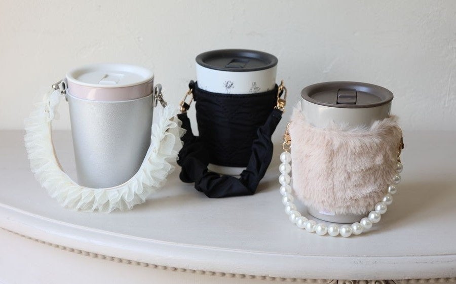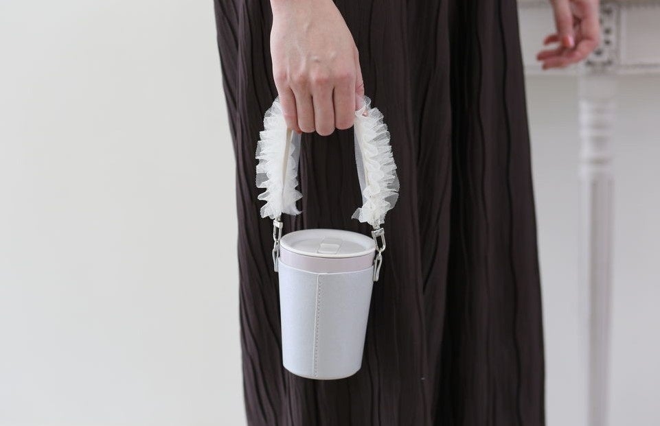 ホットドリンクもカップホルダーに入れれば持ち運びやすく、手首に掛ければ両手が空く優れもの!