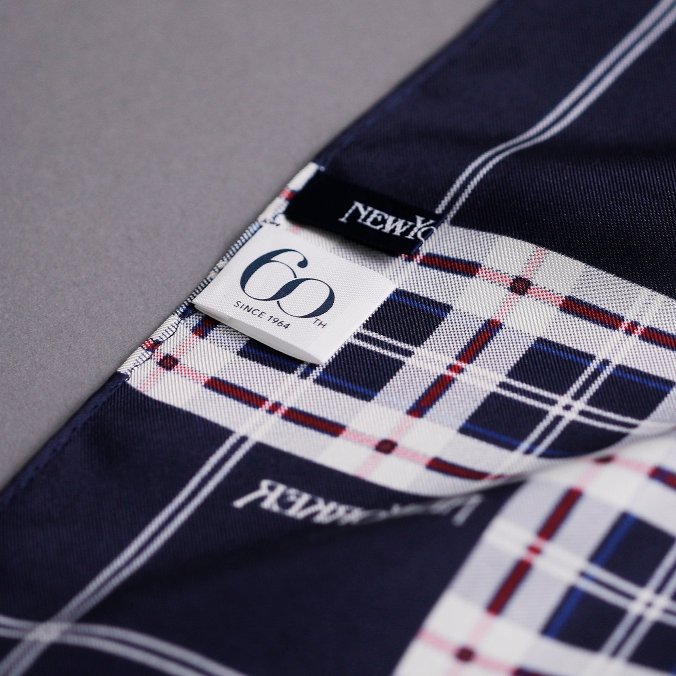 NEWYORKERのシンボルである「ニューヨーカータータン」をパネル柄で表現したウィメンズと共通モチーフのネクタイが登場。ニューヨークの工房で作り上げた60周年限定のオリジナルパターンを施したネクタイです。ハウスタータンをパネル柄にアレンジし、アメリカ式のレジメンタルストライプを配すことでアメリカへの特別な想いが込められた逸品が完成しました。ネームタグには60周年ロゴと共に、NEWYORKERの誕生日である【Jan.11 1964】の刻印が施されています。メンズショップ全店にて展開します。