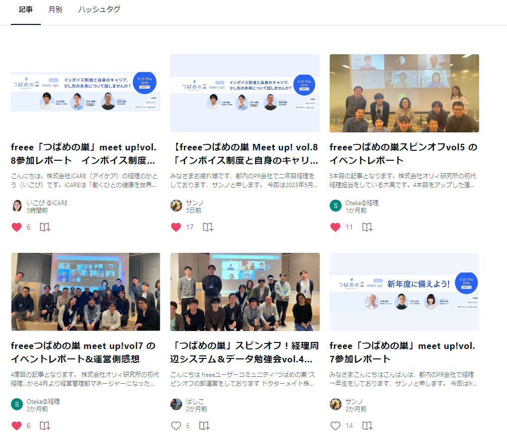 noteでは2ヶ月に1度開催している「freeeつばめの巣meet up!(以下meetup!)」の様子などを公開しています。noteでの発信もリーダーやメンバーが行っています。