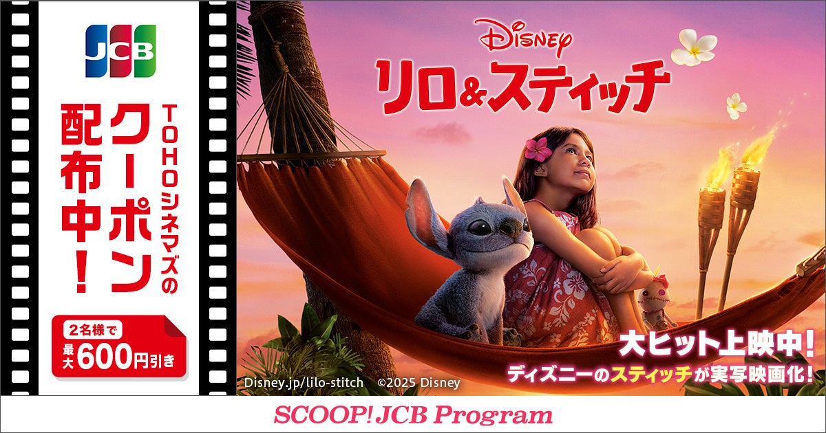 株式会社ジェーシービー(本社:東京都港区、代表取締役兼執行役員社長:二重 孝好、以下:JCB)は、TOHOシネマズ株式会社(本社:東京都千代田区、代表取締役社長:池田 隆之、以下:TOHOシネマズ)と、2025年6月6日(金)から7月3日(木)まで、ディズニー映画最新作『リロ&スティッチ』の公開を記念して本作をお得に鑑賞いただけるクーポンを配布します。