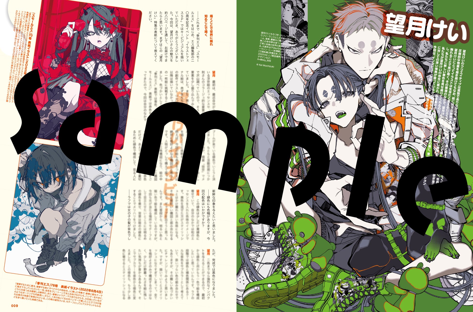 ロングインタビュー、対談、イラストメイキング、活動年表、コラボレーションなど、望月けいのこれまでの活動や作品群を70ページ越えのボリュームで振り返ります。