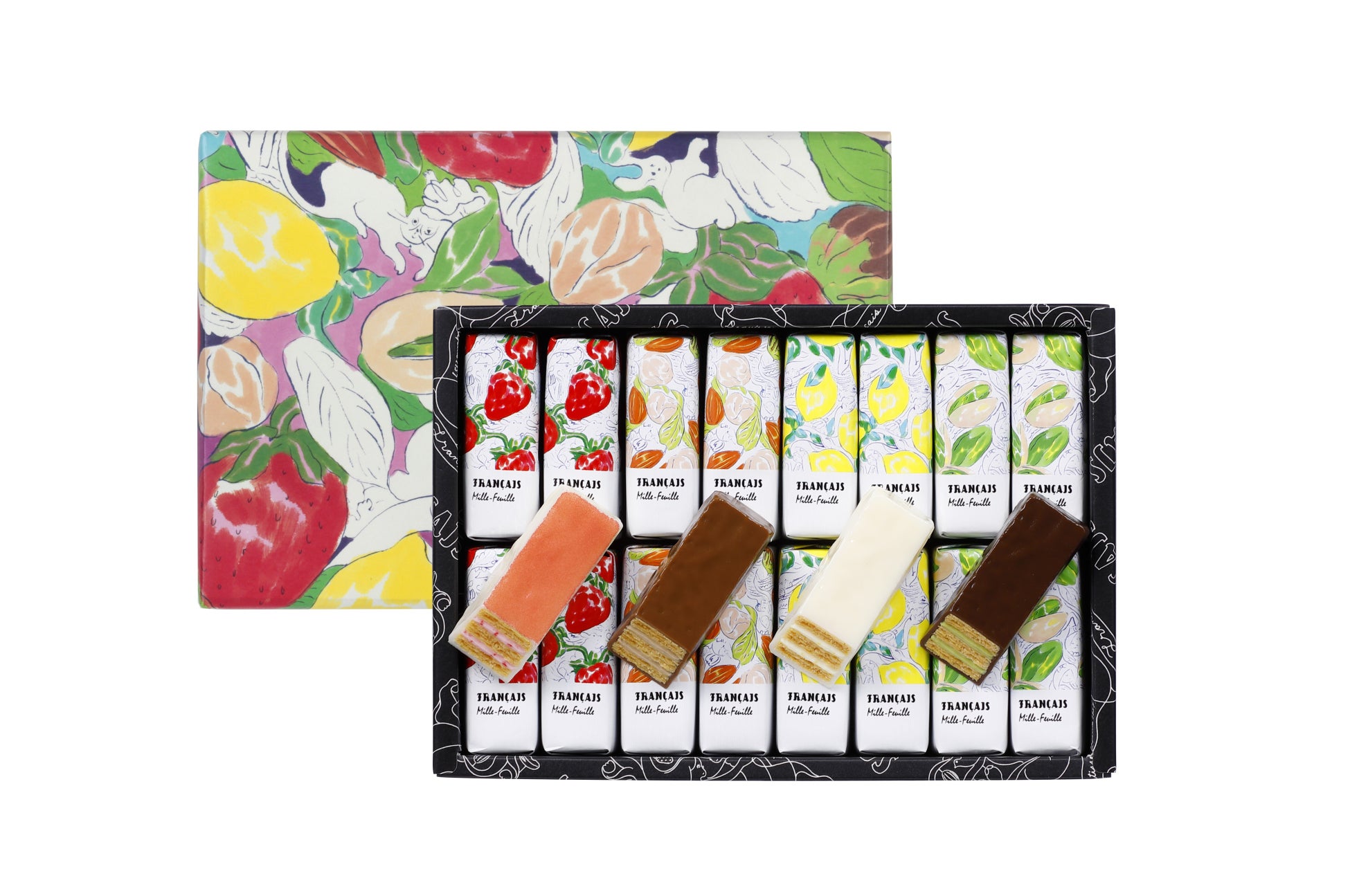 フランセ人気No.1である「果実をたのしむミルフィユ 果実をたのしむ詰合せ」が、新年をお祝いした限定パッケージとなって登場いたします!「いちご」「れもん」「ピスタチオ」「ジャンドゥーヤ」4種のミルフィユをお楽しみいただける詰合せです。