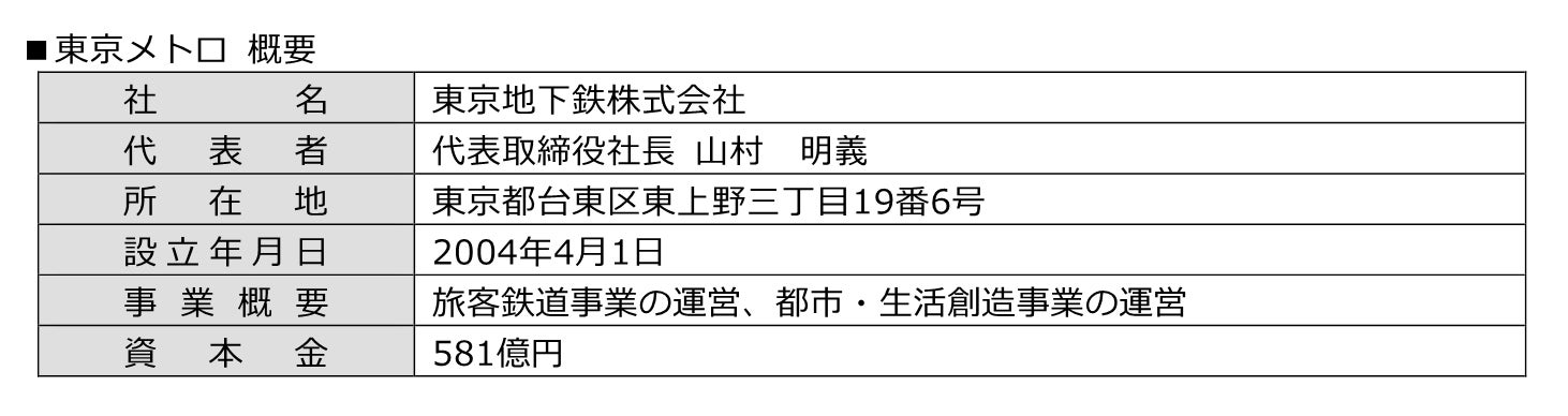 東京地下鉄株式会社(本社:東京都台東区、代表取締役社長:山村 明義、以下「東京メトロ」)と