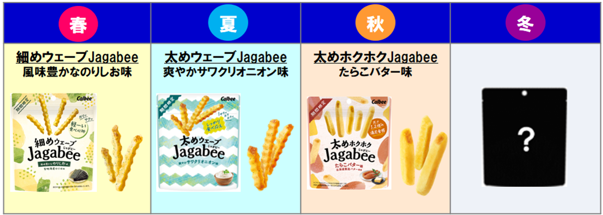今年は「Jagabee」でじゃがいもの多様なおいしさを楽しんでいただきたいという想いから、季節ごとに食感バリエーションを変えた商品を発売することを決定。3月には“春”の「Jagabee」として「細めウェーブJagabee 風味豊かなのりしお味」を、7月には“夏”の「Jagabee」として「太めウェーブJagabee 爽やかサワクリオニオン味」を発売しました。今回は“秋”の「Jagabee」として『太めホクホクJagabee たらこバター味』を発売します。