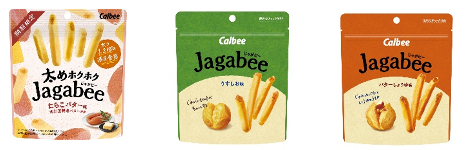 「Jagabee」は、じゃがいもの味わいにこだわり、素材そのまま、皮つきじゃがいもを使用し、独自のサクッホクッとした食感が心地よい“じゃがいもの味がちゃんとする”スナックです。2006年に発売した人気ブランドで、「うすしお味」や「バターしょうゆ味」といった定番品の他、カットのバリエーション展開でじゃがいもの新たなおいしさをご提案しています。