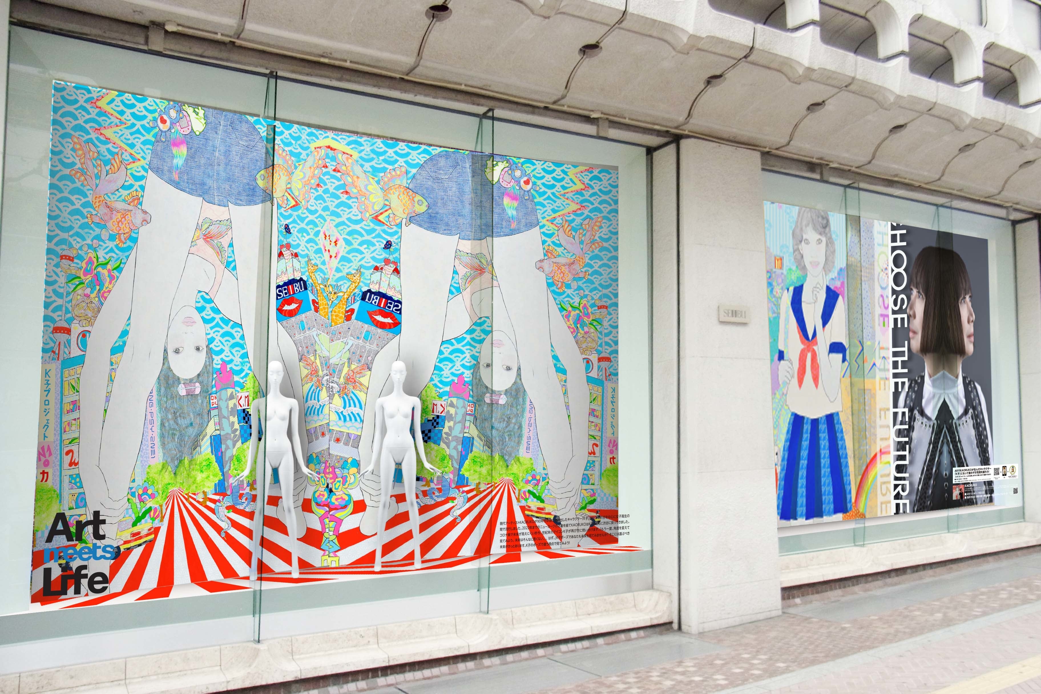 取り組みの象徴として、A館1階=ショーウインドーにはアーティストKAORUKOが描きあげた渋谷の街をテーマに「角度を変えて見てみる」K子が登場。当たり前になっていることも、角度を変えて見てみると、新しい発見があることを表しています。