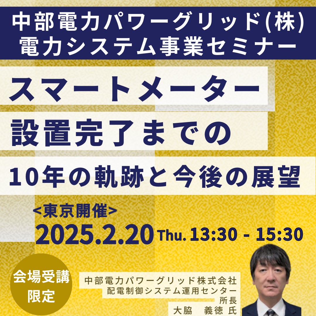 【JPIセミナー】中部電力パワーグリッド(株)「スマートメーター設置完了までの10年の軌跡と今後の展望」2月20日(木)<東京開催>