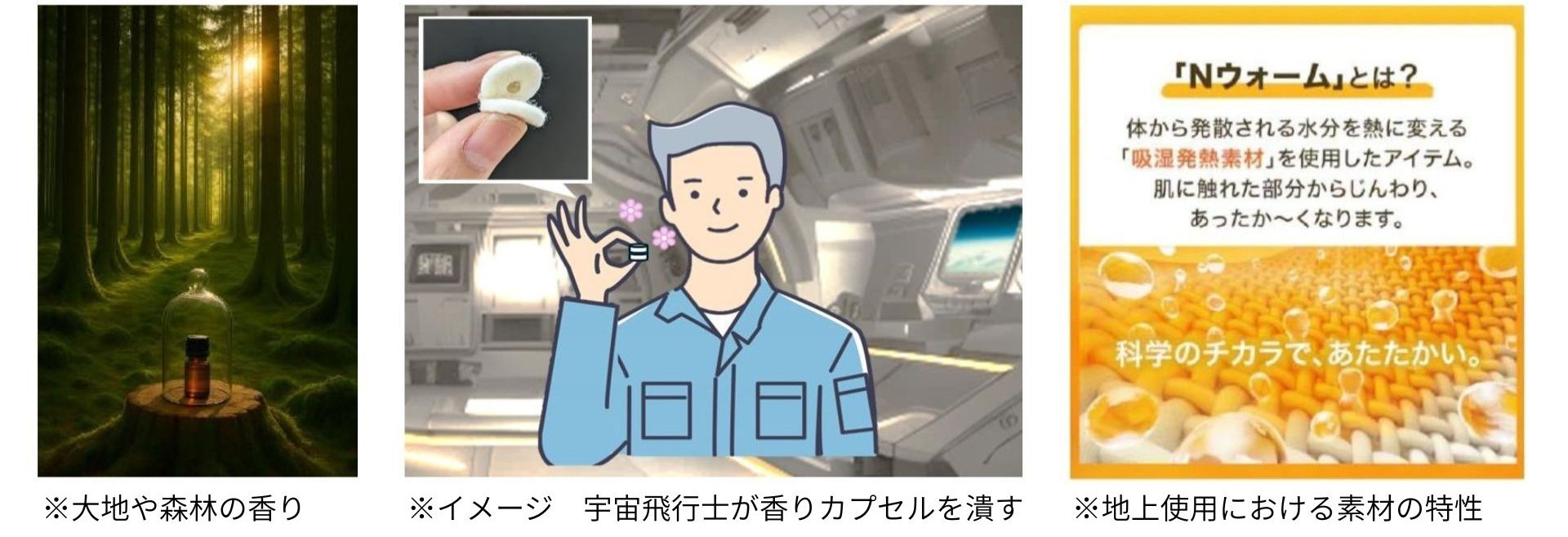 宇宙⾶⾏⼠が⻑期滞在中に直⾯する「睡眠」に対する課題に着⽬。“⾹りと温もりで整える”心地よい睡眠環境を厳しい条件下でも提供することを構想し、3社で製品を開発しました。