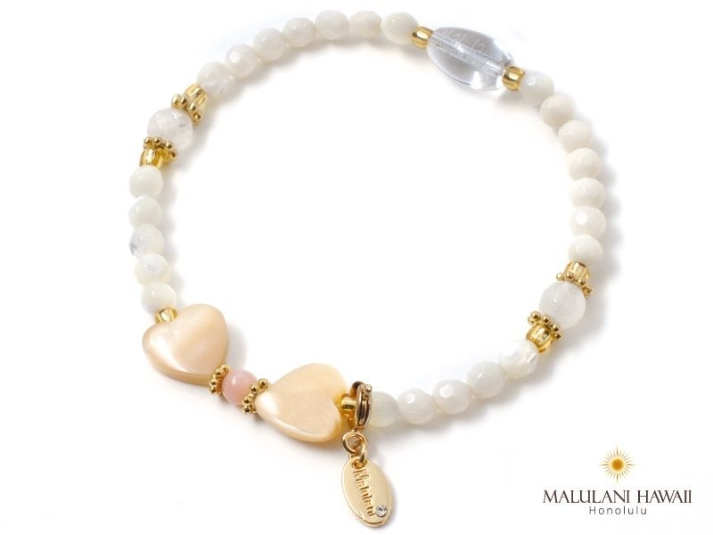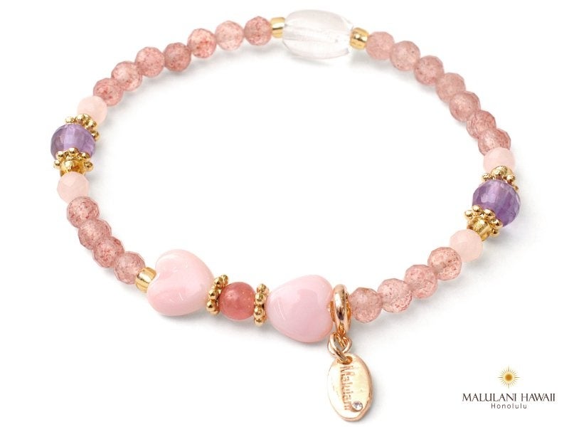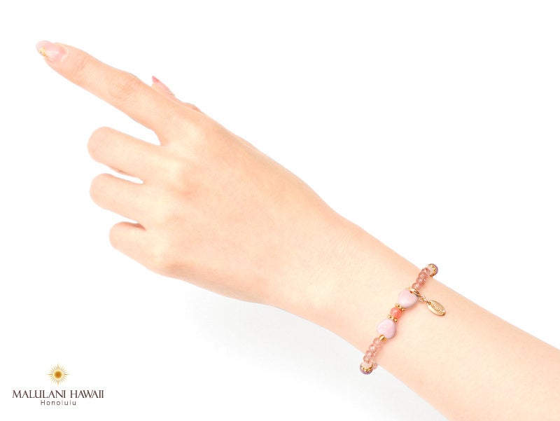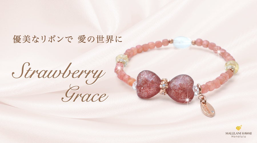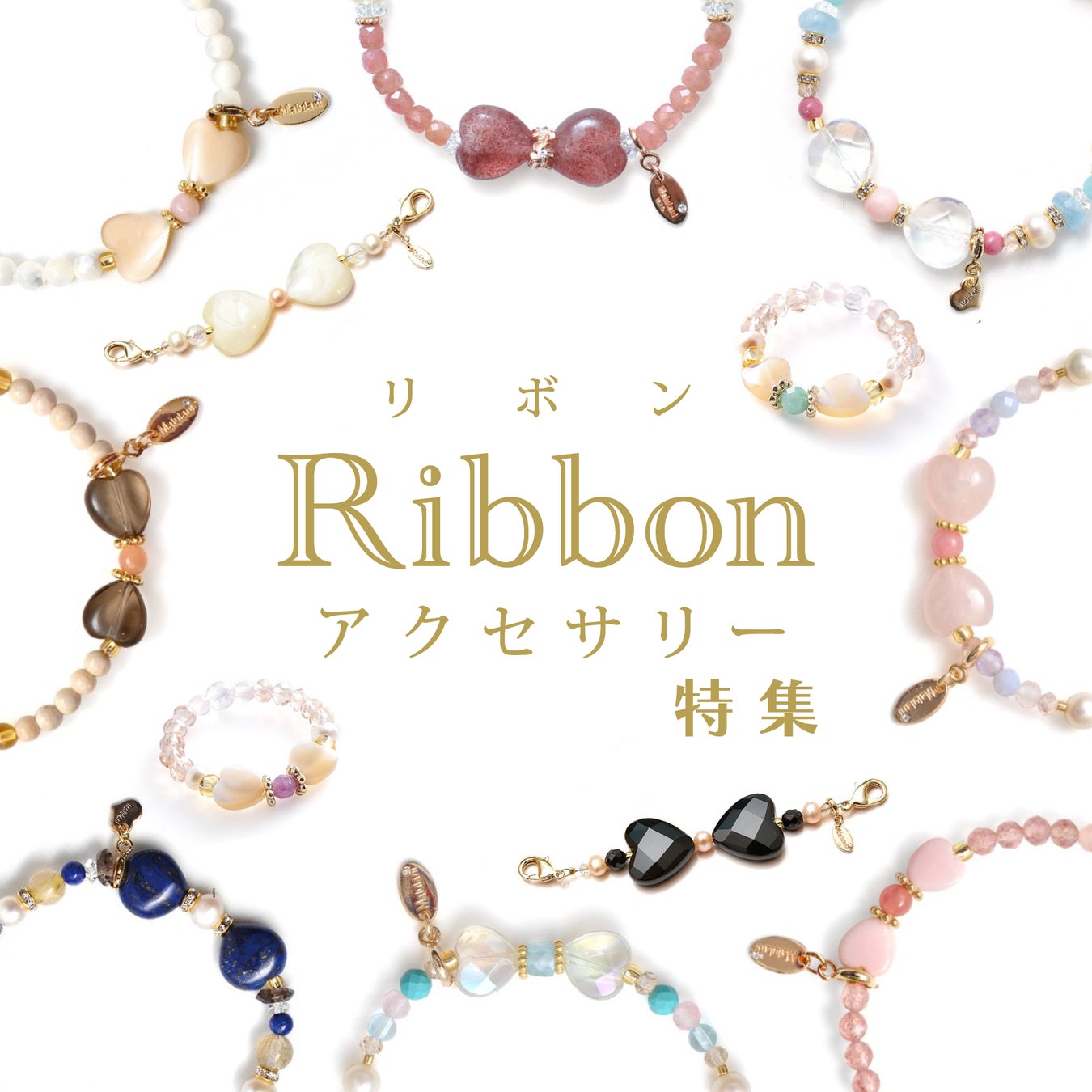 ハート型のストーンをリボンに、大人可愛いパワーストーンブレスレットに仕立てたアクセサリーは、マルラニハワイ創業当時からの人気アイテム。バレンタインデーからホワイトデーまでの期間限定にてリボンアクセサリー特集開催中!