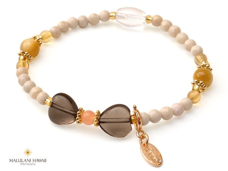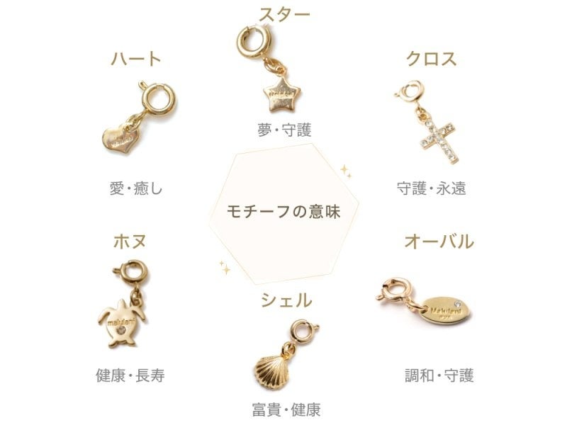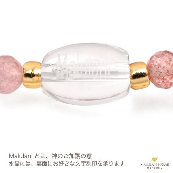 水晶やオリジナルチャームには、ハワイ語で「神に護られたを意味する「Malulani」と刻印。