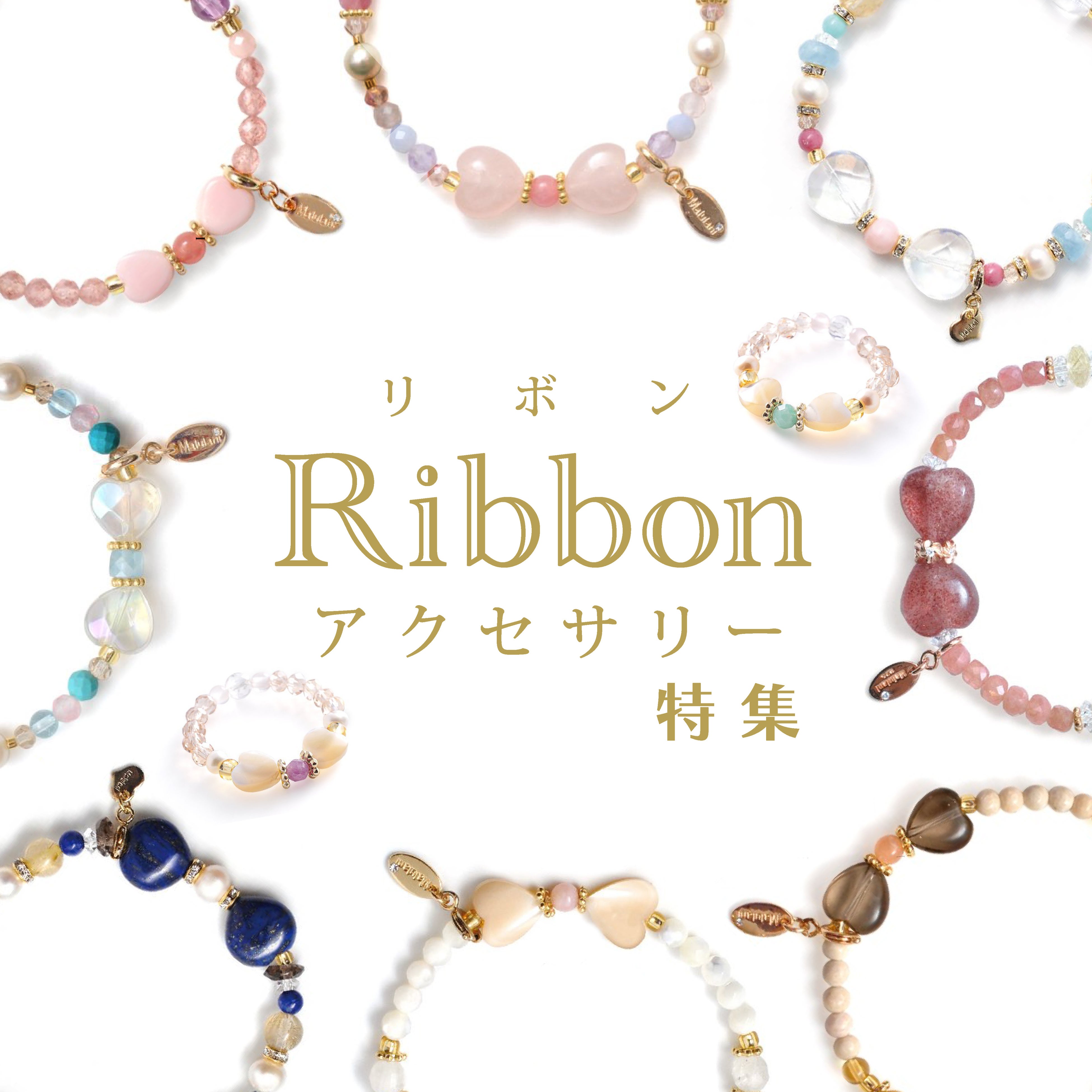 永遠に大好きなリボン仕立てのパワーストーンアクセサリーを、Happyのお守りにいかがでしょうか?