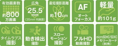 他にもタイムプラス撮影、動き検出機能、スローモーション撮影など多機能なカメラです。