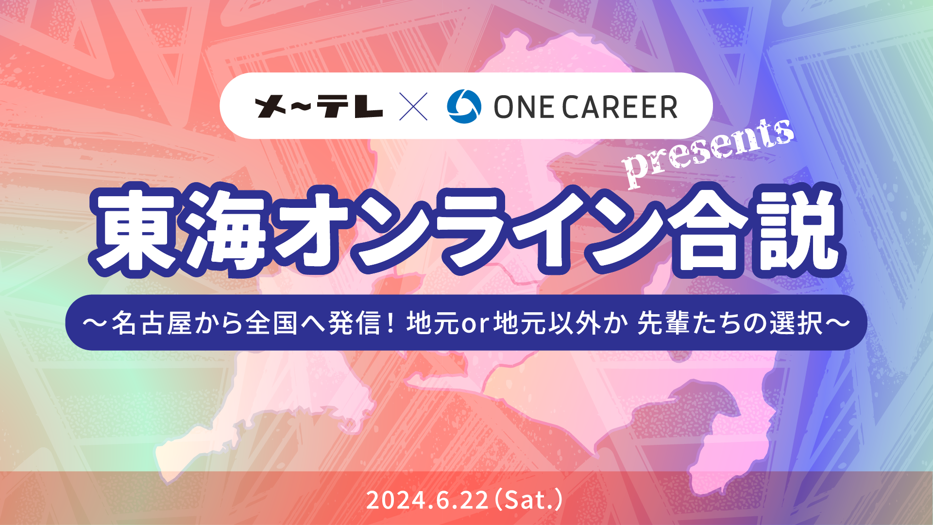そこで今回、卒業後の働く場所について考える学生の中でも東海エリアにゆかりのある学生を対象に、メ~テレ(名古屋テレビ放送株式会社)とワンキャリア(株式会社ワンキャリア)がタッグを組み、東海・関東エリアの企業が一堂に会する特別オンラインイベントを実施する運びとなりました。本イベントは、6月22日(土)にワンキャリアの公式YouTubeチャンネルで放映します。