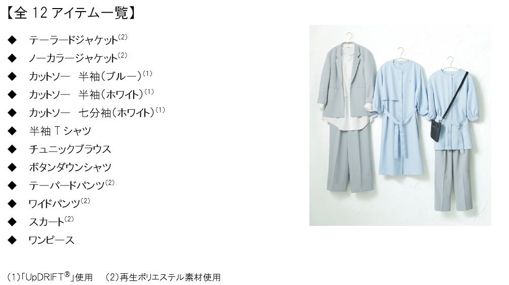 年代や性別を問わず個性を引き出す全12アイテムで67通りのコーディネートが可能に 海洋漂着したペットボトルから作られた再生素材を新採用 現制服はアップサイクル