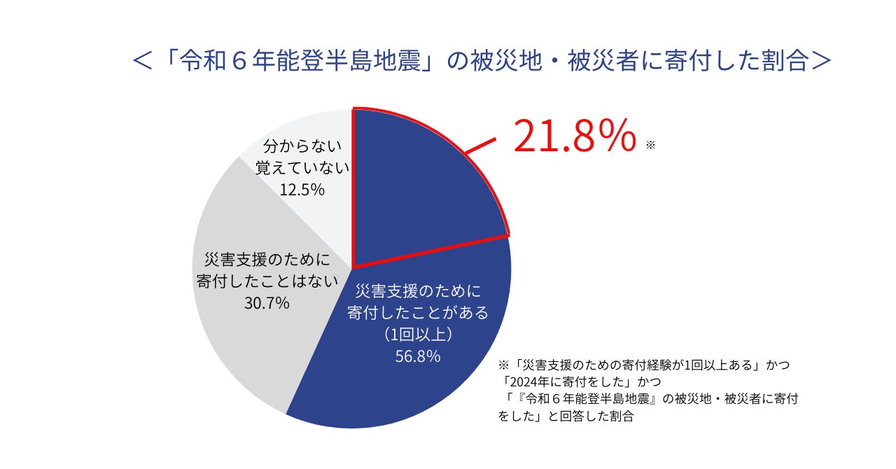 ・今年1月の能登半島地震で被災地・被災者に寄付した人は全体の21.8% 。寄付手段は「支援団体によるネット募金窓口」が最多。