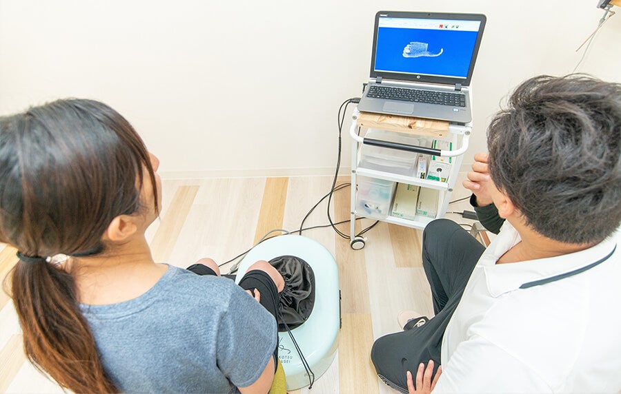 からだの土台、足元(距骨)に注目。「姿勢カルテ」と「3D足型計測器」の2つの測定器を使い、現在の足の