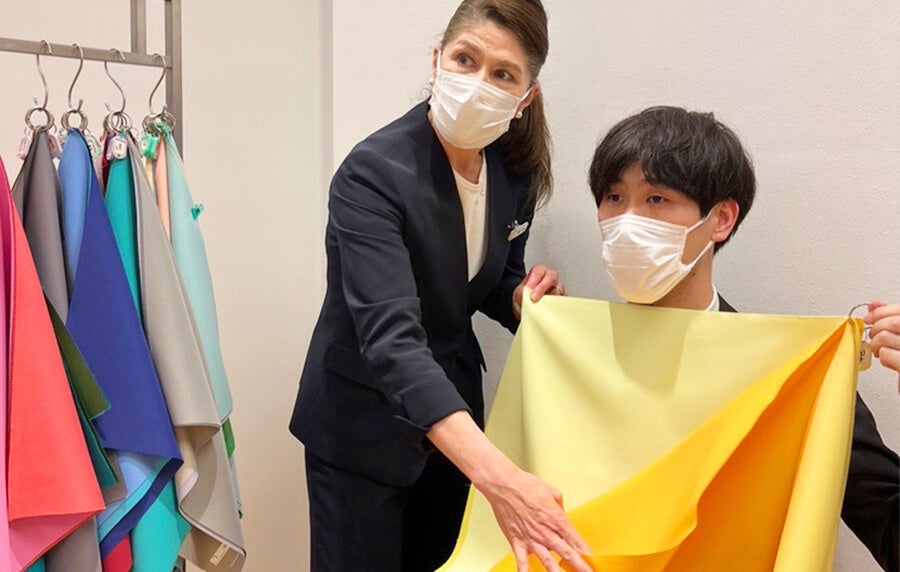 メンズビューティーコーナーでお買いあげのお客さまに、ファッションアテンダントがパーソナルカラー