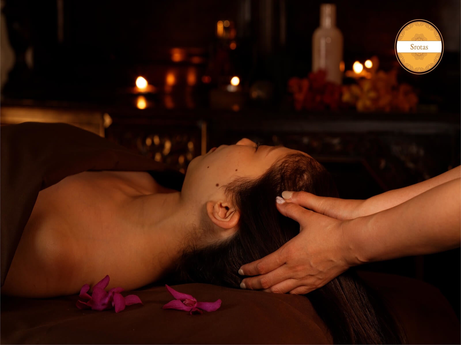加圧コースに、アーユルヴェーダトリートメントをセット。体質を調べるドーシャチェックで選んだ、お客さまに合ったオイルで、ヘッドとデコルテのトリートメントを実践します。