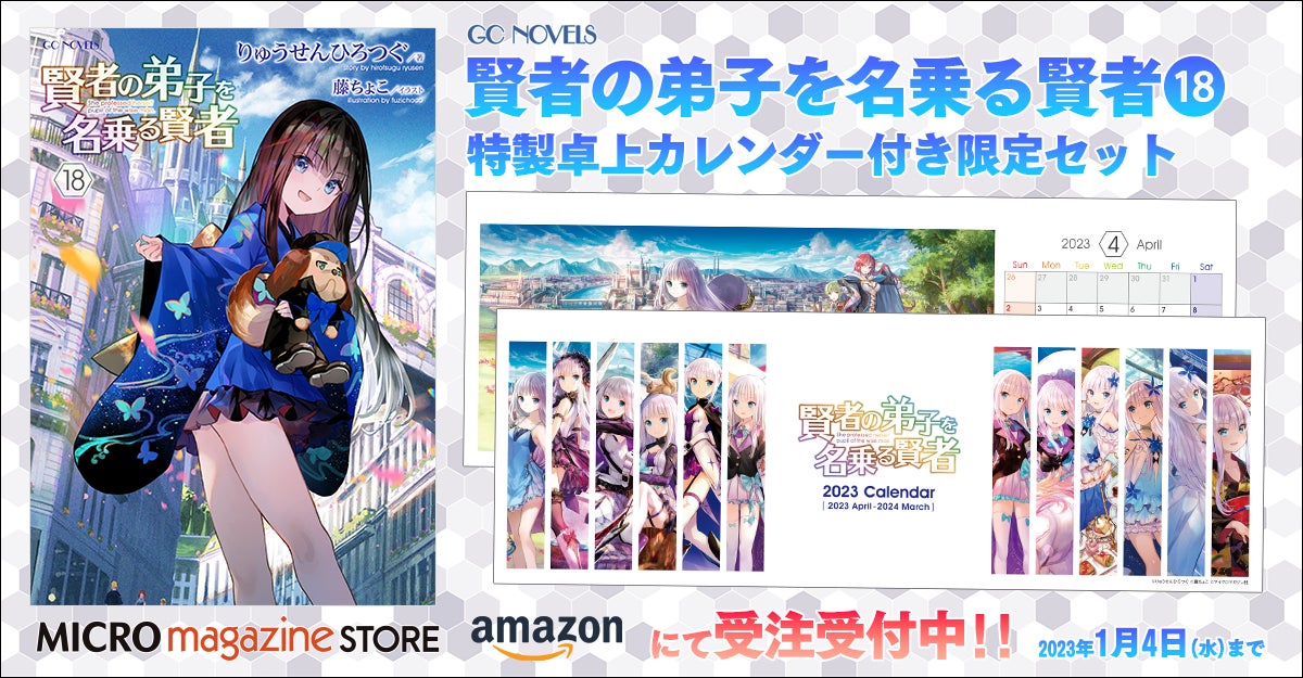 マイクロマガジン社(東京都中央区)は、GCノベルズ『賢者の弟子を名乗る賢者 18 特製卓上カレンダー付限定セット』を2023年1月30日(月)に発売いたします。