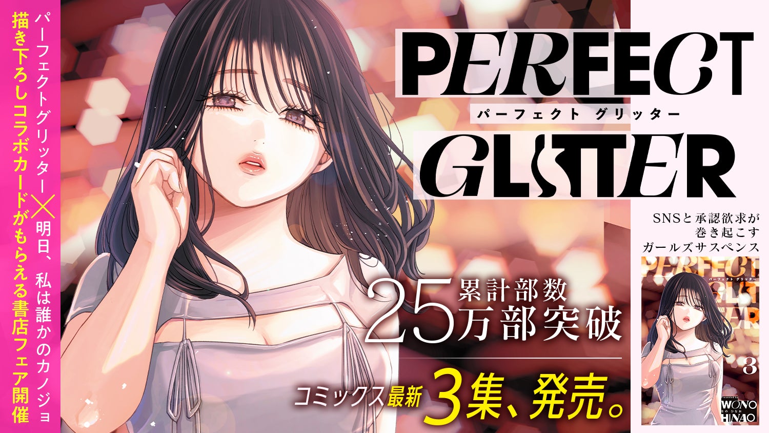 『パーフェクトグリッター』は、累計部数800万部を突破した『明日、私は誰かのカノジョ』の作者・をの ひなお先生の最新作です。SNSの「いいね」を糧に生きる主人公のモモと、彼女が憧れるインフルエンサーのイチカ——何が嘘で何が本当かわからない、二人の危うい関係を描いたガールズサスペンス漫画で、累計部数は25万部を突破しています。