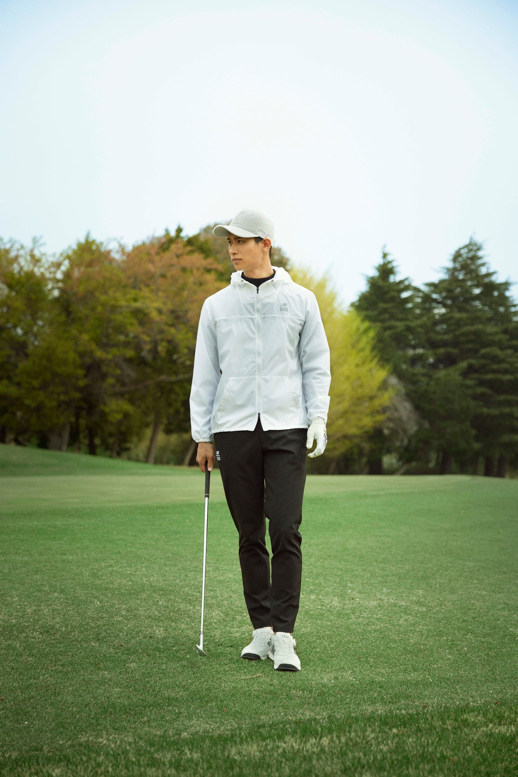 通常ポケットに加え、ティーなども入れられるファスナーポケットをプラスしたテーパードシルエットロングパンツ。撥水&高ストレッチで動きやすく、快適な穿き心地を実現。