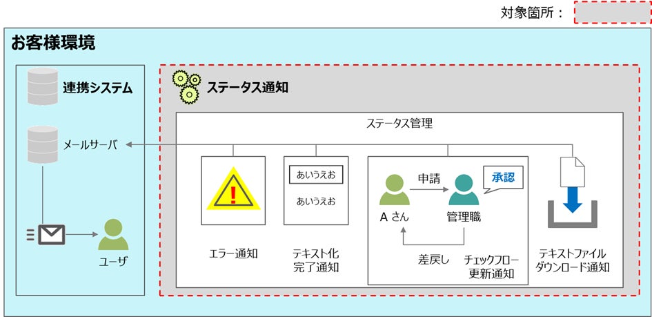 作業を実行するポイントごとにステータス通知設定を設けることができる仕組みを開発します。エラー発生時に通知するなど作業の状況に合わせて通知を行うことができるため、AI OCRの一連の作業を適宜確認することなく、OCR実行中に別の作業をすることができ、効率的に業務を進めることを可能にします。