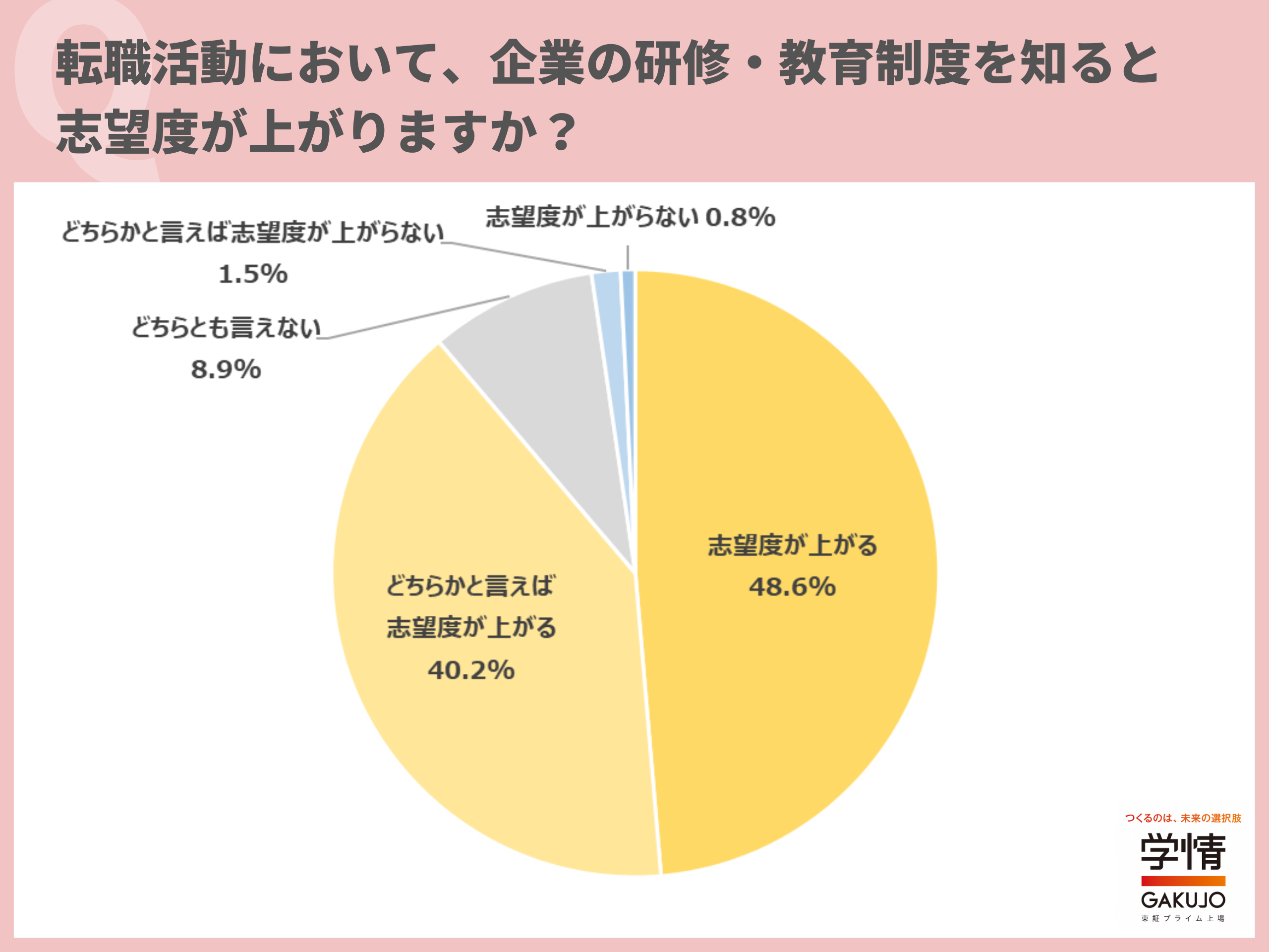 (2)転職活動で、企業の研修・教育制度を知ると「志望度が上がる」の回答が9割に迫る