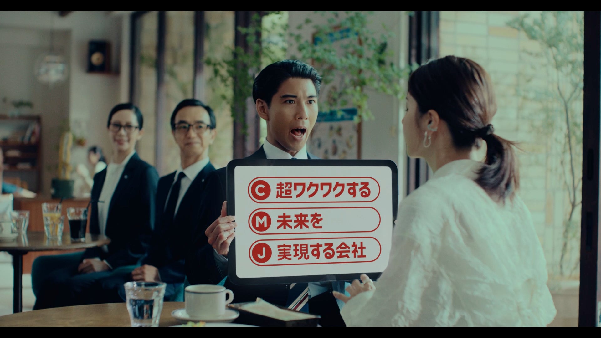 キヤノンMJグループは2024年9月24日より、賀来賢人さんと松本若菜さんを起用した企業CM「登場・熱弁」篇、「登場・おまかせください」篇を放映しています。本CMでは(C)キヤノン(M)マーケティング(J)ジャパングループの頭文字を、(C)超ワクワクする (M)未来を(J)実現する会社と表現し、未来の社会課題を解決して希望や喜びに満ちた未来を創っていきたいという想いを表現しています。