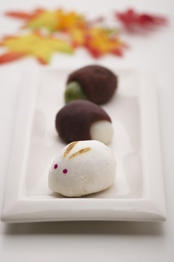 里芋のすがたになぞらえた楕円形のお団子に、こしあんをかぶせた京都ならではの「月見だんご」です。なめらかなこしあんともっちりやわらかなお餅のハーモニーが絶妙。- うさぎモチーフの和菓子も注目!