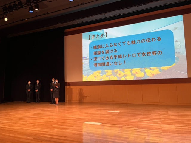 蒲田名物、黒湯の銭湯をイメージしたお部屋ですが、学生ならではの視点でZ世代にも親しみやすいアクティビティを企画しています。今後、本内容をホテルコースの学生が中心となってブラッシュアップし、2022年冬の販売に向けて準備を行います。