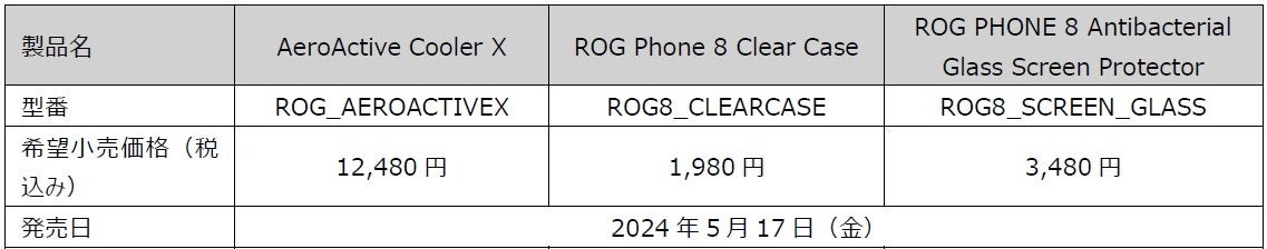 ●ROG Phone 8シリーズ専用アクセサリの発売日および希望小売価格
