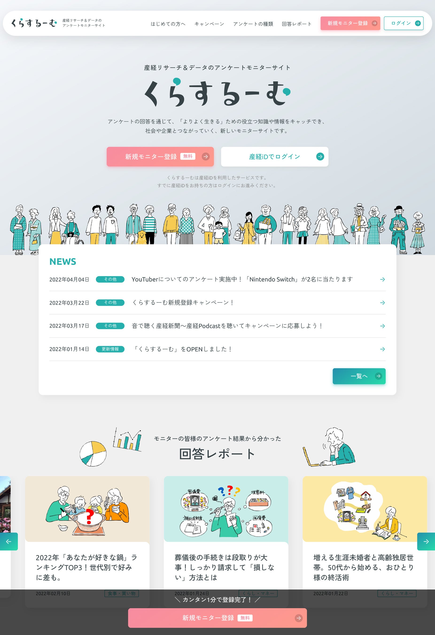 産経新聞グループの市場調査会社「産経リサーチ&データ」は、アンケートモニター専用サイト「くらするーむ」( https://monitor.sankei-rd.co.jp/ )をオープンしました。インターネット上で各種アンケートに協力いただけるモニターを募集しています。