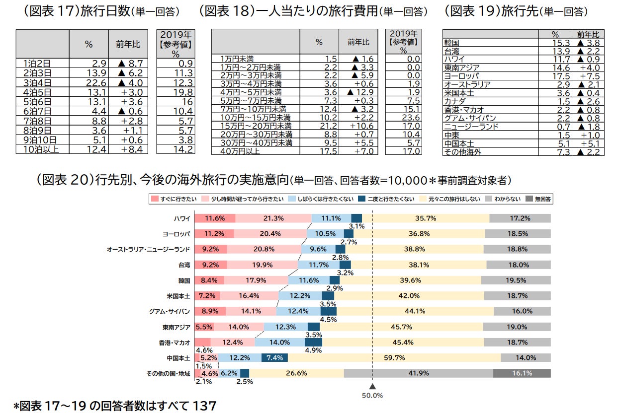 アジアを中心とした近隣への短期旅行は継続して人気が高いものの、今年は欧州など長期に遠方へ旅行する意向がやや回復するほか、円安の影響が少ない地域を選ぶ傾向