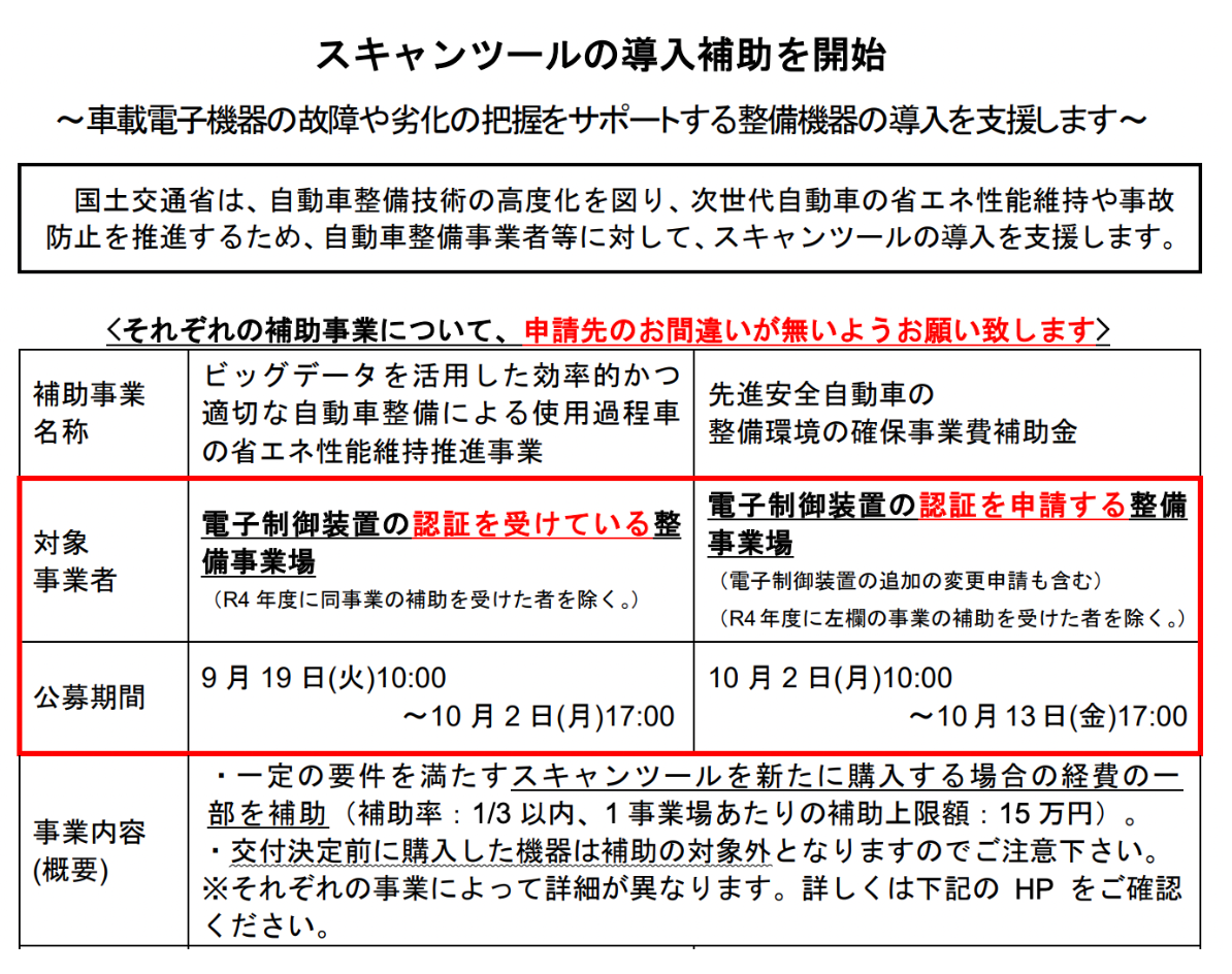 【ついに9月19日、スキャンツール導入補助金がスタート】