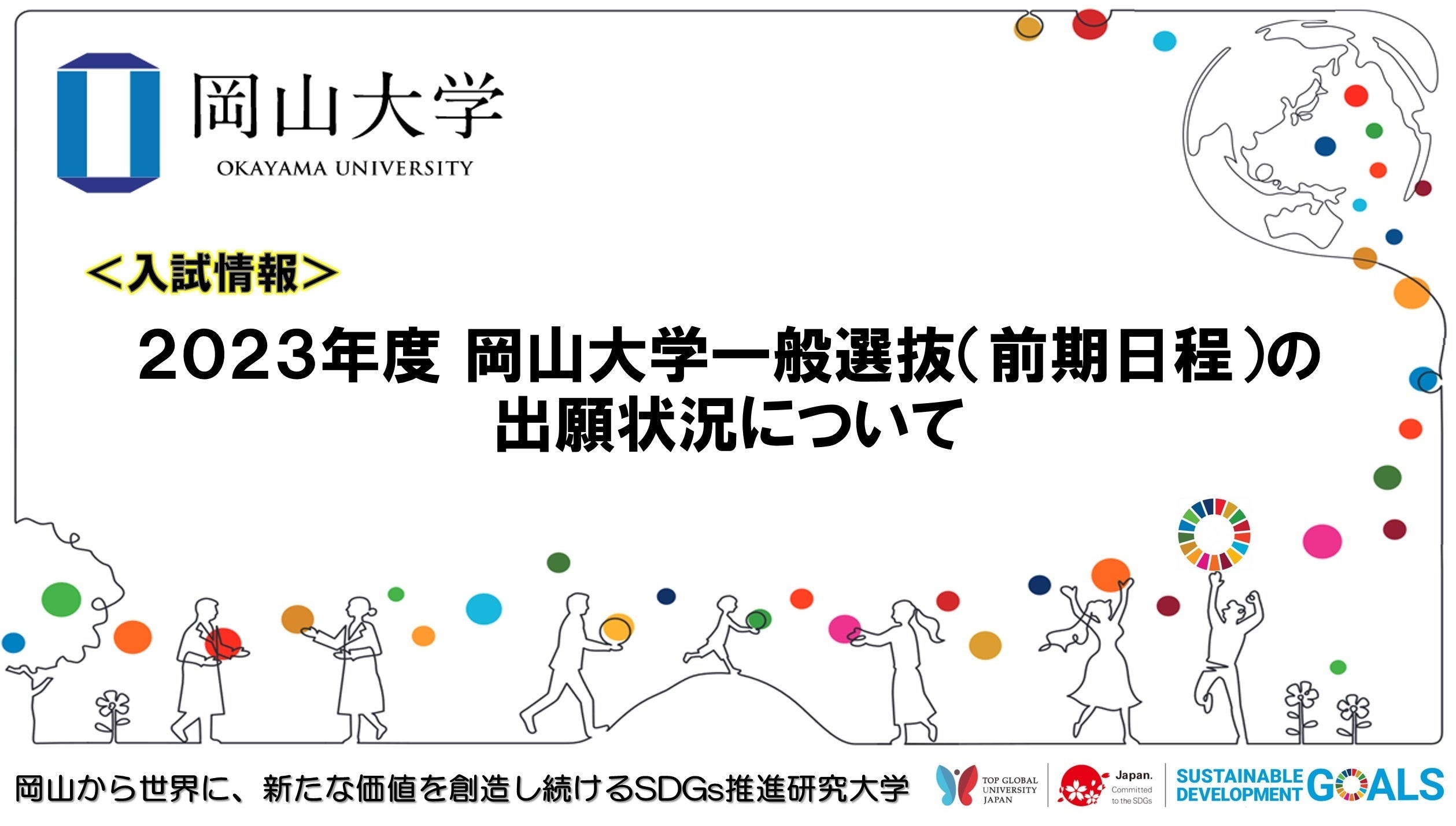 2023年度岡山大学一般選抜(前期日程)の出願状況について,以下のアドレスにて公表しておりますので,お知らせします。