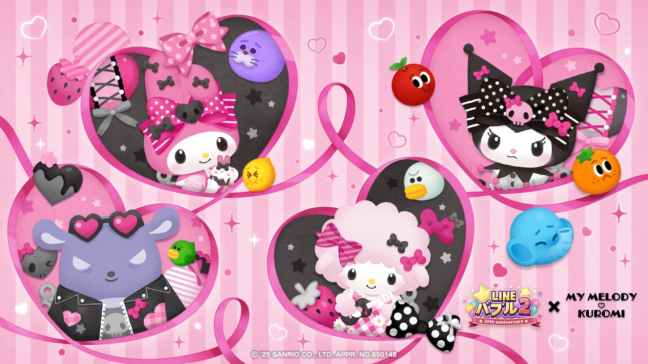 LINEヤフー株式会社は、本日2025年6月10日(火)より、当社が展開するバブルシューティングゲーム「LINE バブル2」(iPhone・Android対応/無料)は、株式会社サンリオの人気キャラクターで、2025年に50周年を迎えた「マイメロディ」と20周年を迎えた「クロミ」の『マイメロディ&クロミ』とのコラボレーションを開始します。