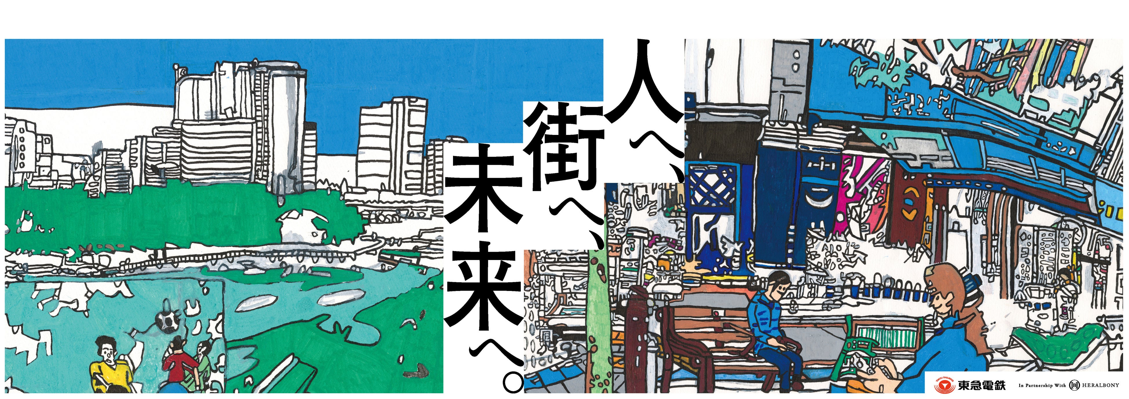 当社は、株式会社ヘラルボニー(以下、ヘラルボニー)と協業し、当社スローガンをテーマにヘラルボニー契約アーティスト・中島敏也氏が描画したデザインのアートラッピング電車『「人へ、街へ、未来へ。」彩りを描く特別な電車』(以下、本電車)を、2025年11月4日(火)から東横線、11月25日(火)から田園都市線にて、それぞれ1編成ずつ運行します。また、2026年1月末まで、両編成の車内広告をジャックし、両社が協業する思いや中島氏の作品を掲出します。