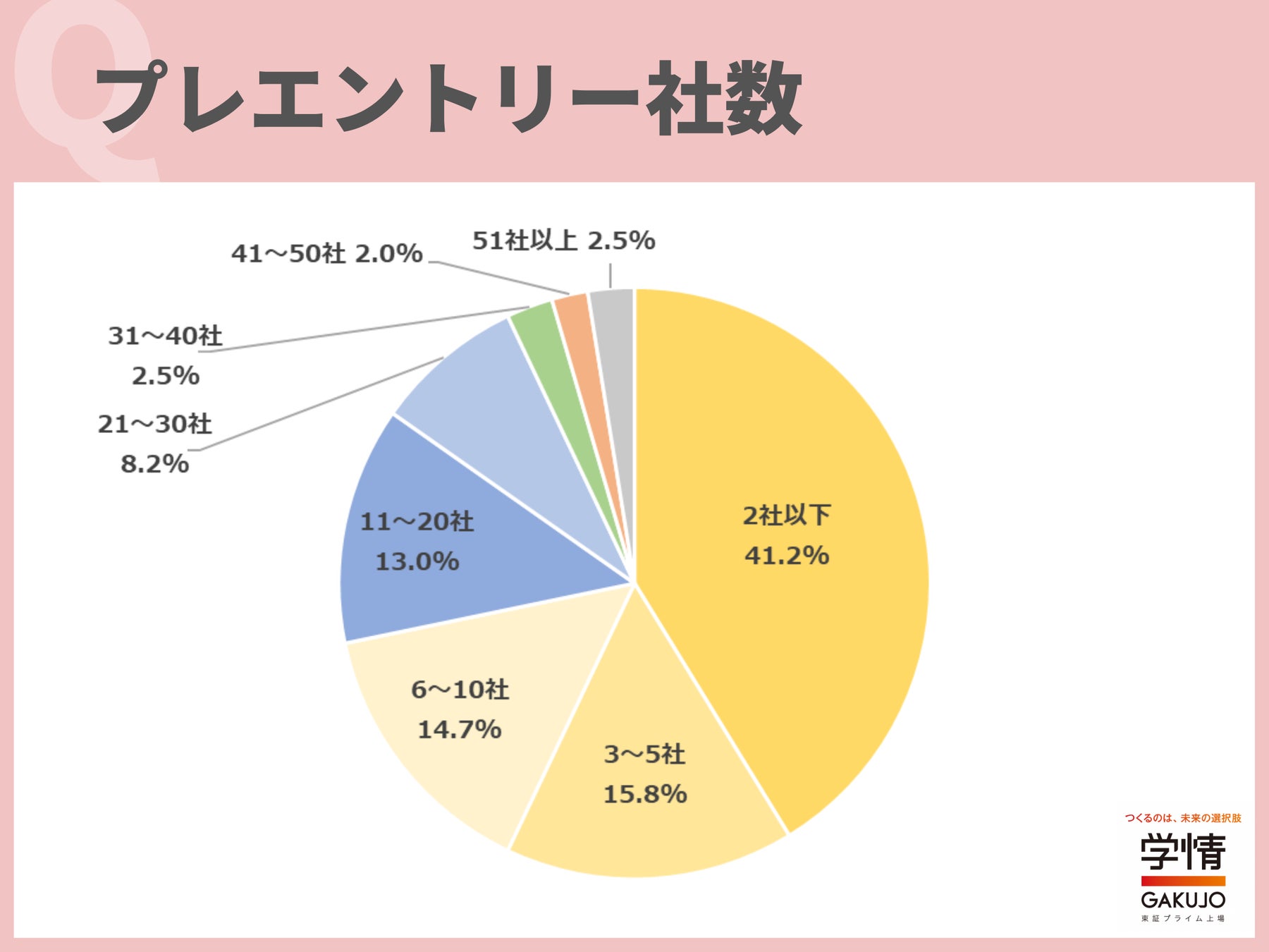 (1)プレエントリー社数「10社以下」の回答が7割超。最多は「2社以下」41.2%