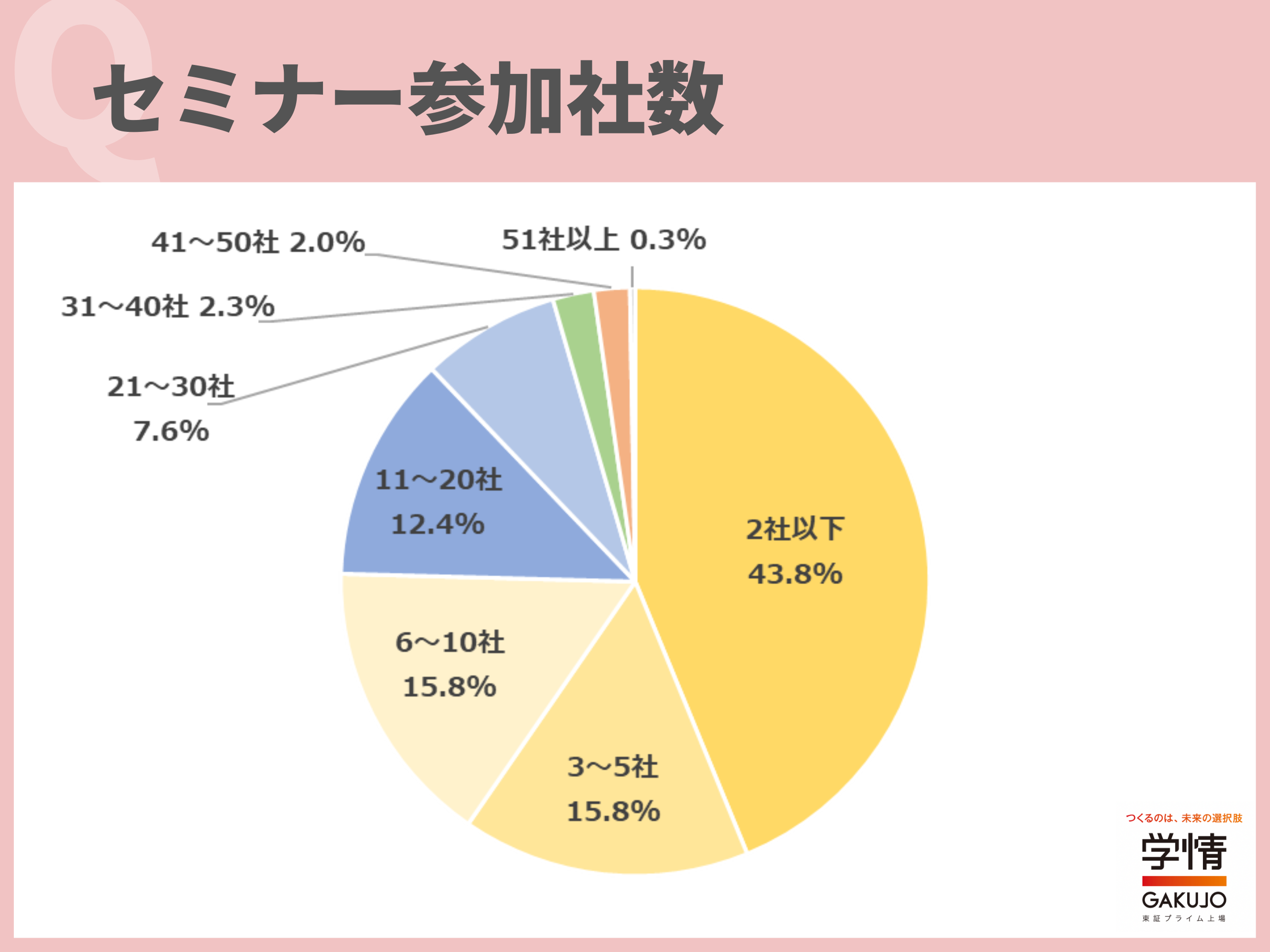 (2)セミナー参加社数「10社以下」の回答が75.4%