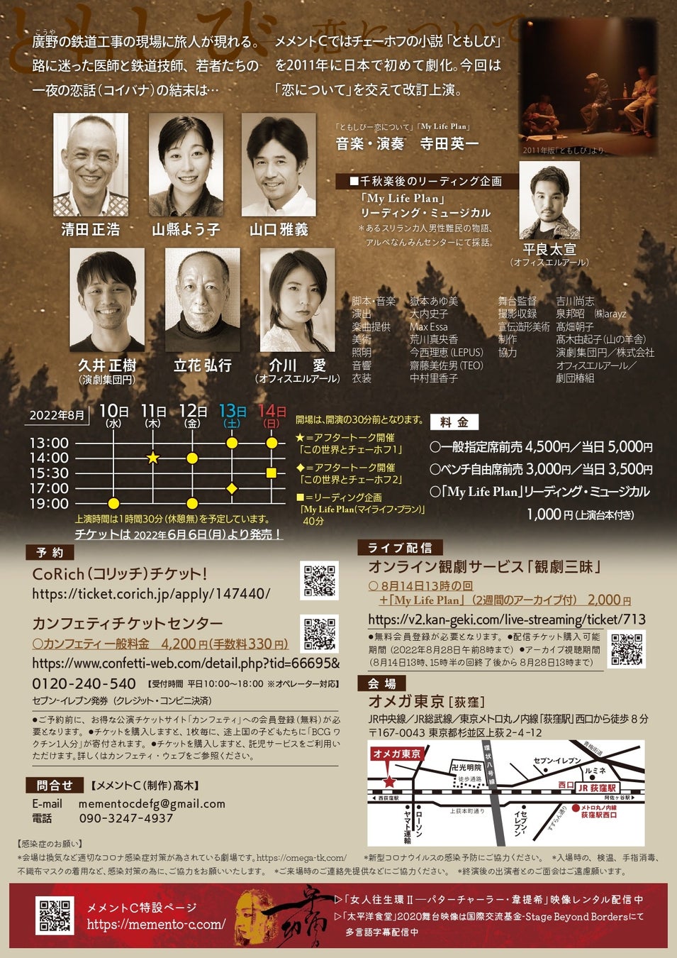 メメントC公演『ともしびー恋について』が2022年8月10日 (水) ~2022年8月14日 (日)にオメガ東京(東京都杉並区)にて上演されます。チケットはカンフェティ(運営:ロングランプランニング株式会社、東京都新宿区、代表取締役:榑松 大剛)にて発売中です。