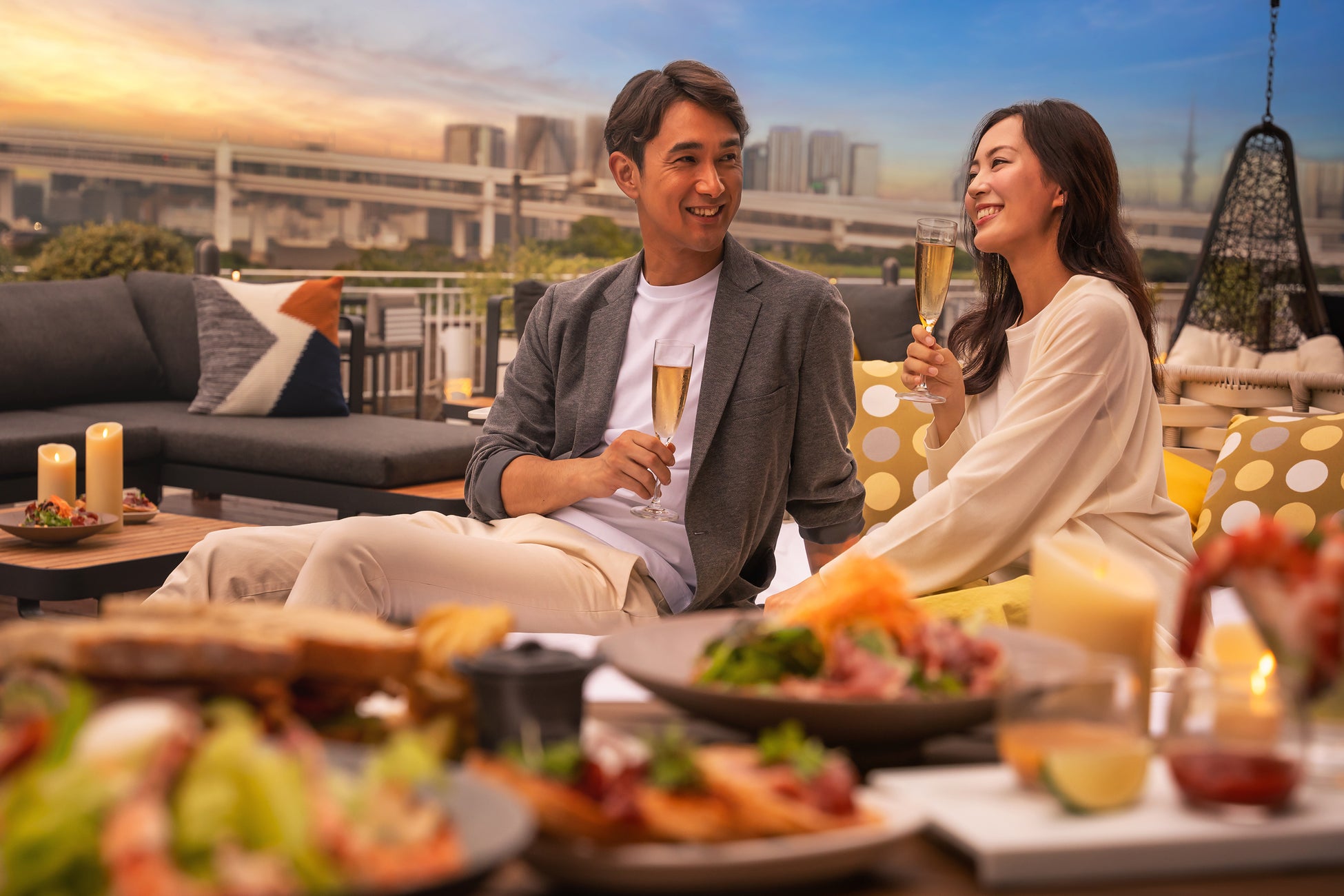 【2022年9月16日】ヒルトン東京お台場(東京都港区台場)に今年オープンした「テラスラウンジ」では、東京の街並みやレインボーブリッジ、東京タワー®などのパノラマビューを、移りゆく時間帯とともにお楽しみいただけます。9月16日(金)から10月30日(日)までの期間限定で、シャンパン「モエ・エ・シャンドン モエ アンペリアル」などのフリーフローとアペタイザーの盛り合わせがセットになったシャンパンフリーフロープランを販売いたします。
