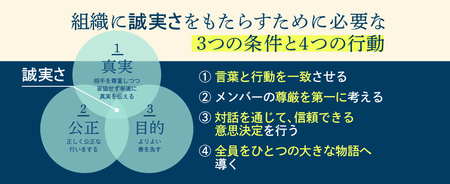 「誠実さ」がなぜ大切なのか、組織にどのような影響を与えているのか、ビジネスの中で実践していくにはどうしたらよいのか。