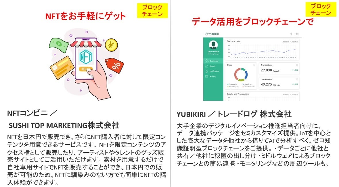 本展示会では、Web3時代を支えるブロックチェーンサービス、NFT関連技術やマーケットプレイスなどが出展するエリアを特設します。