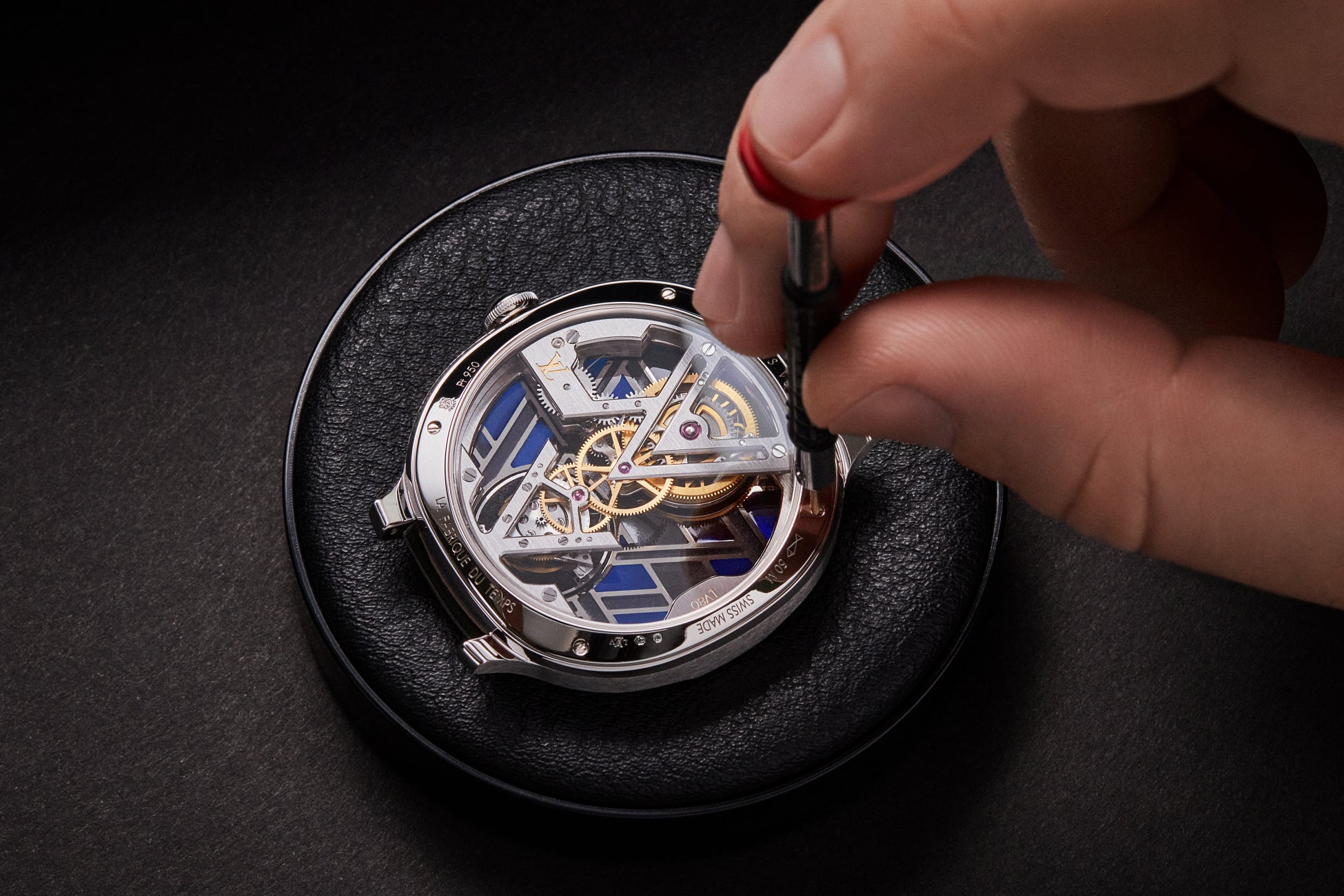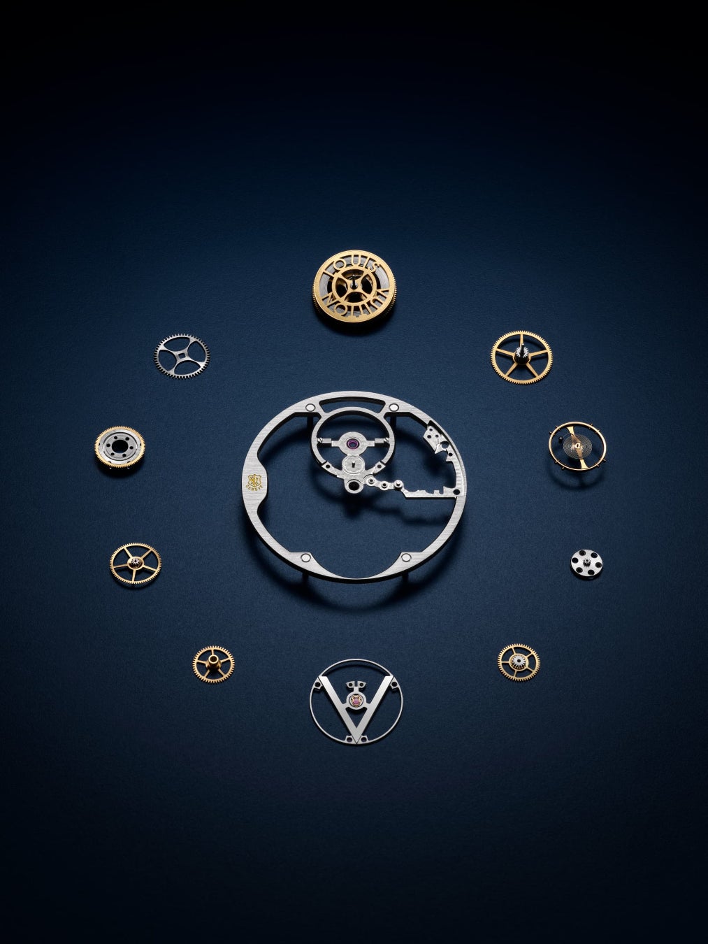 「ラ・ファブリク・デュ・タン ルイ・ヴィトン」内で独自に開発・設計されたこのフライング トゥールビヨンは、現代のハイウォッチメイキング分野におけるルイ・ヴィトンの類い稀な技術の証。