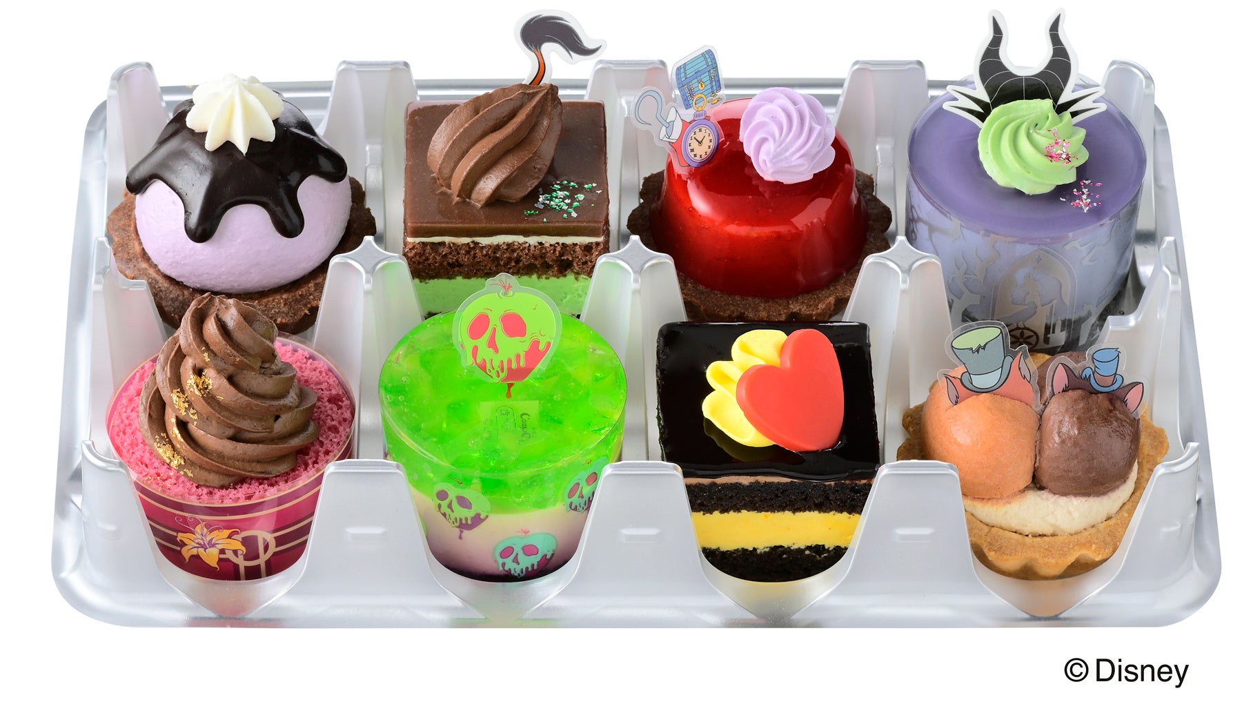 特長:「ディズニーヴィランズ」の魅力を8種のプチケーキで表現しました。