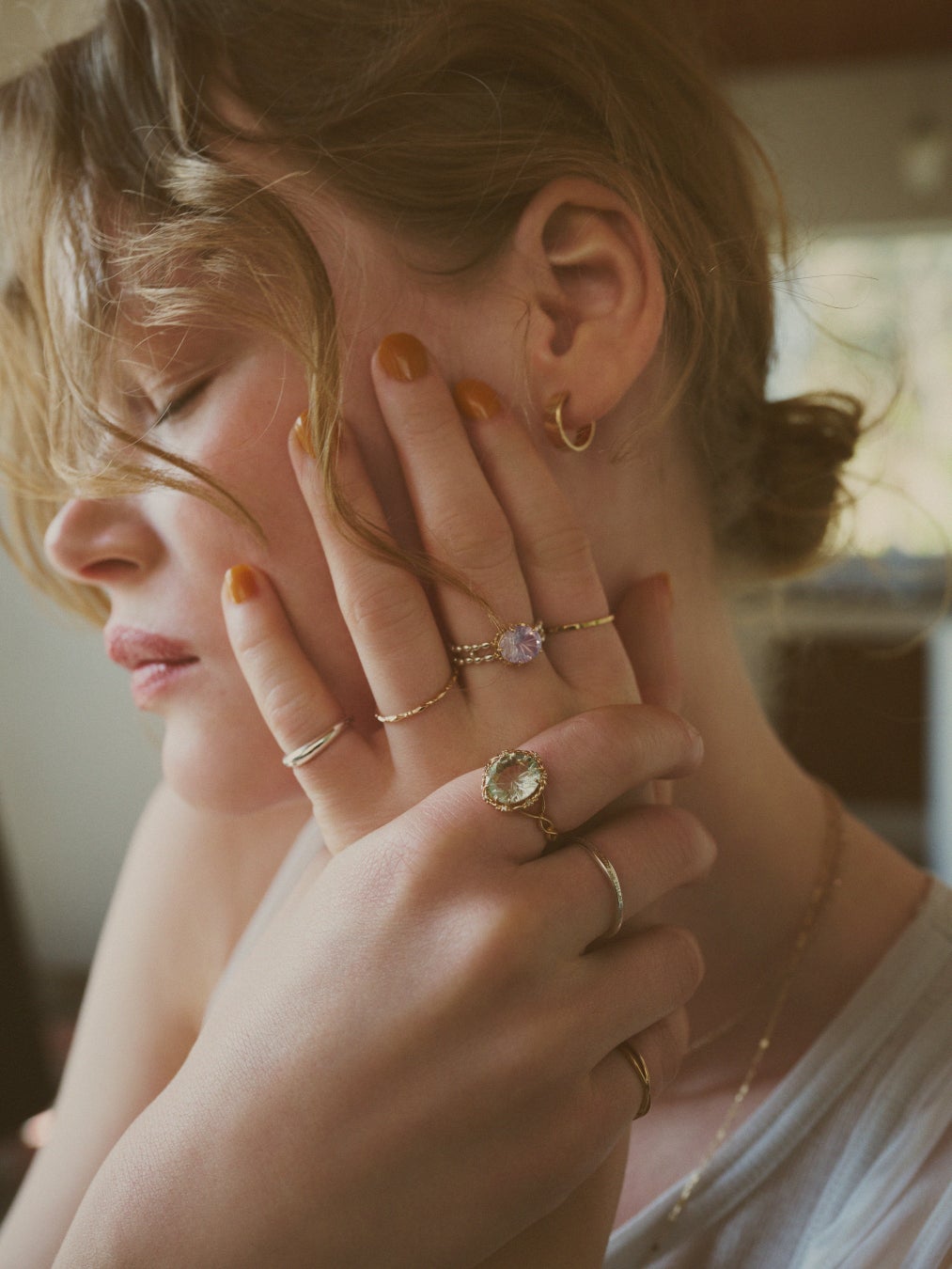 足かせのない、自由な発想。ヴィンテージのように、いつまでも色褪せない魅力。新しい価値観を生み出す、パリジェンヌのエスプリ。自分らしく生きる女性たちにそっと寄り添い、小さな物語を込めて届けたい。ベーシックさと遊び心に満ちた「小さな幸せを纏えるジュエリー」。