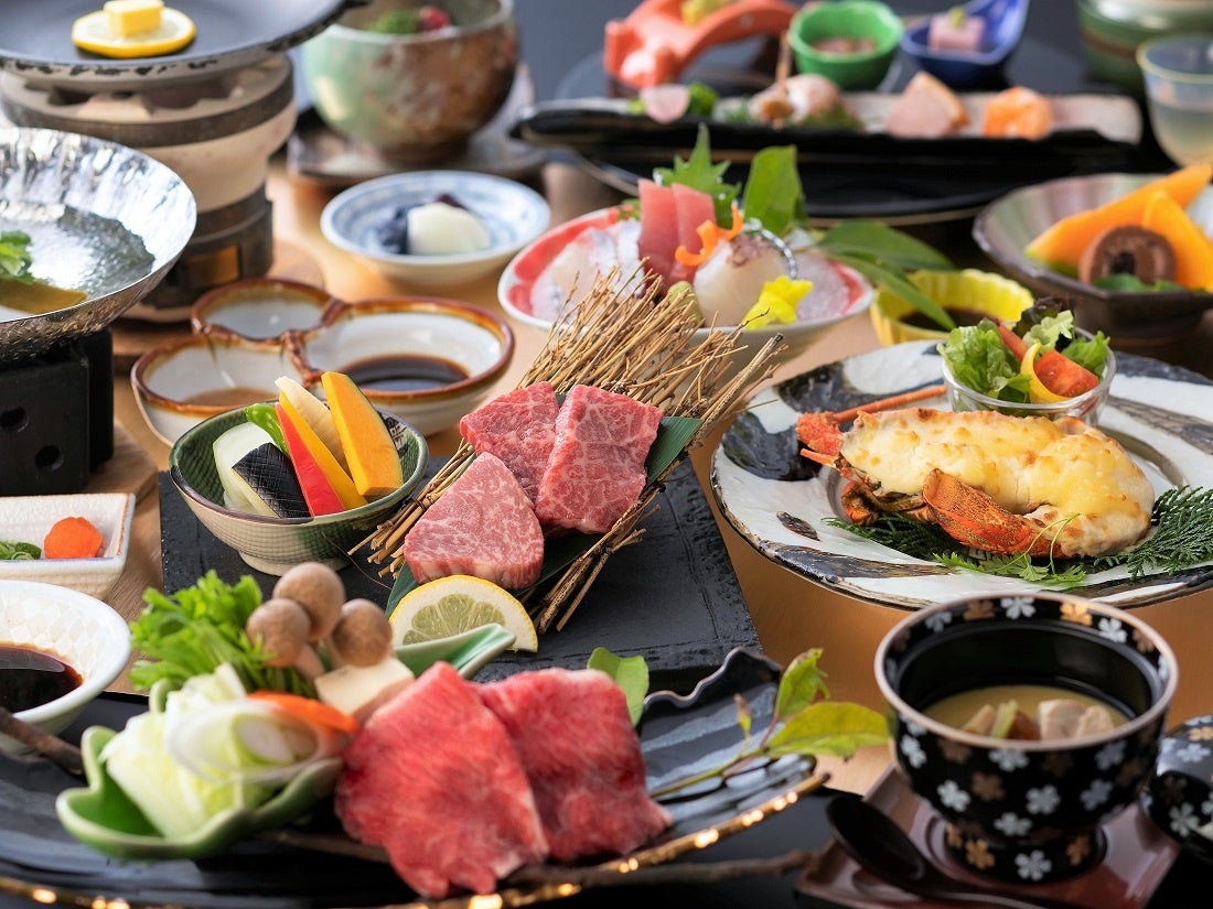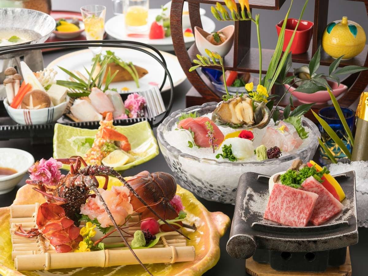 伊勢海老、鮑、蟹、そして紀州味覚のクエ、熊野牛の華やかな集い。