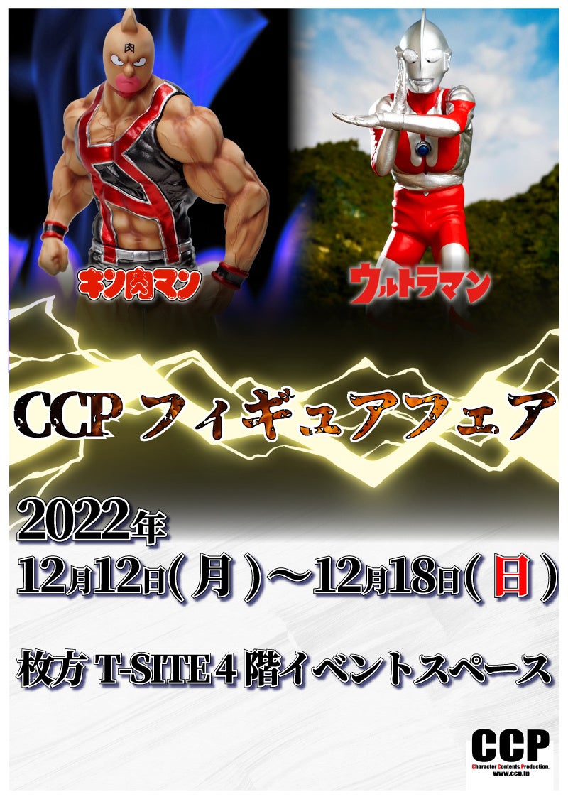 CCPが手掛ける昭和のヒーロー「ウルトラマン」と「キン肉マン」のフィギュア展示と即売会を枚方T-SITE4階、7mの本棚の空間で1週間実施いたします。