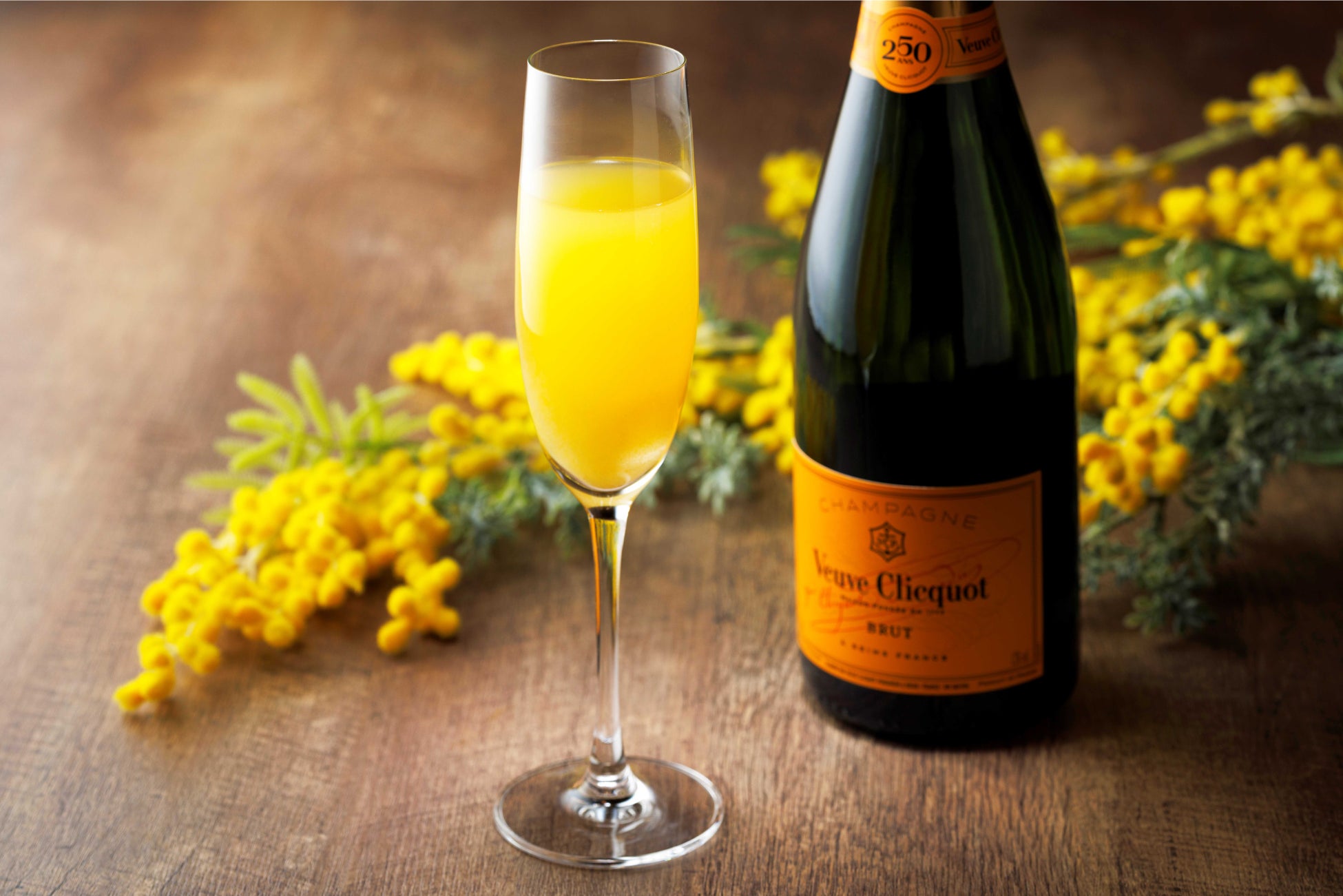 ヴーヴ・クリコとフレッシュオレンジを使ったシャンパンカクテル。